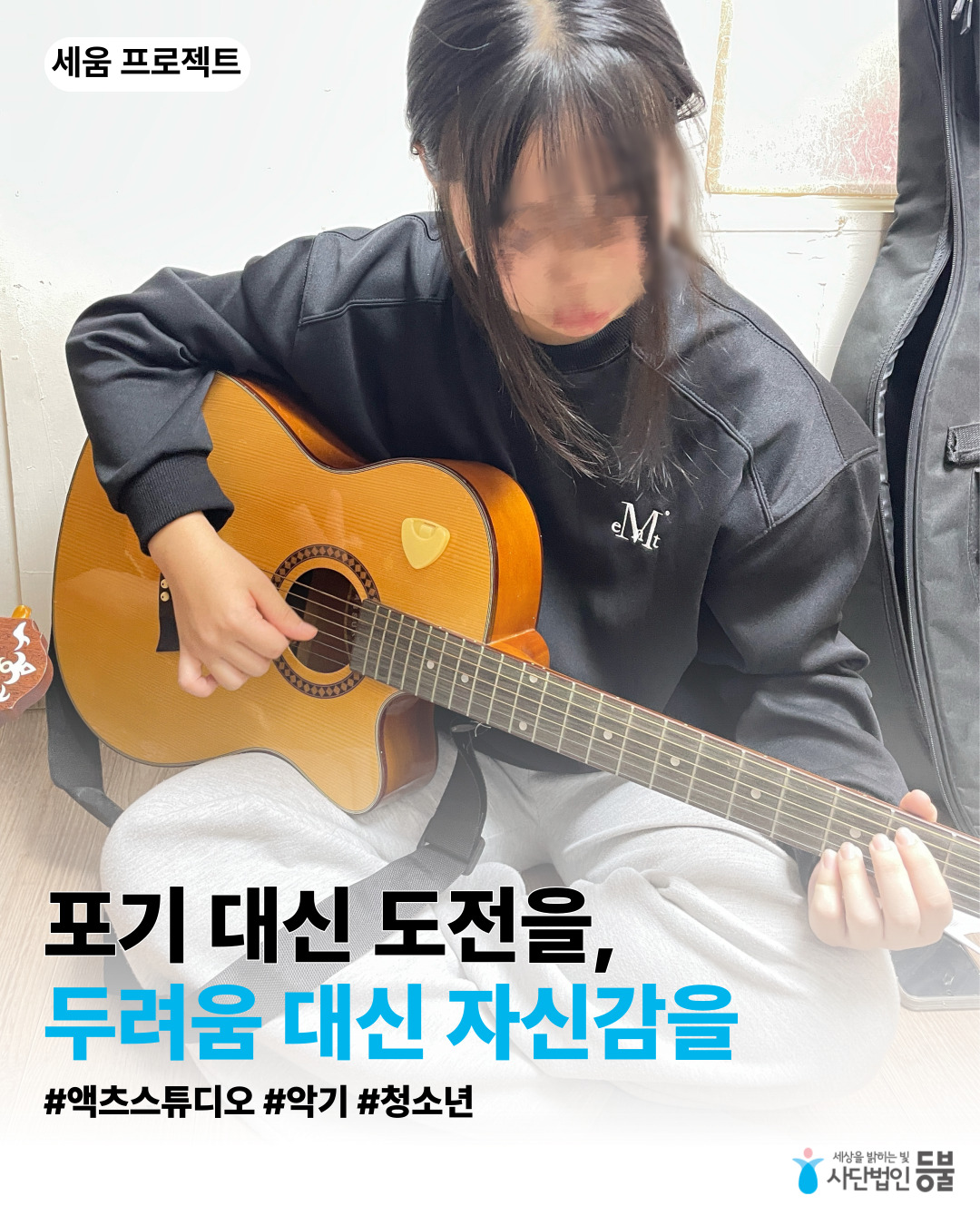 ✨ 세움 프로젝트 ✨세움프로젝트가 시작된 지 한 달,아이들은 악기를 통해 함께 성장하는 즐거움을 배우고 있습니다.‘자신이 없어요’라며 움츠렸던 아이들이지금은 ‘저 이제 잘하죠? 소리가 달라졌어요!’라며조금씩, 그러나 분명히 변하고 있습니다.음악은 아이들을 세우고,후원은 그 발걸음을 멈추지 않게 합니다🎶💡 여러분의 후원은 아이들의 ‘포기’를 ‘도전’으로 바꾸는 힘이 됩니다.👉 지금, 등불과 함께 아이들의 가능성을 세워주세요.